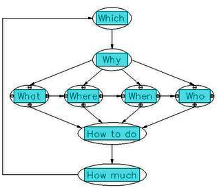 6W2H通用決策:是一個(gè)以價(jià)值為導(dǎo)向的標(biāo)準(zhǔn)化思維流程,是人們在追求理想和目標(biāo)的過程中,都要經(jīng)過選擇目標(biāo)(which)→選擇原因(why)→功能如何→(what)→什么場地(where)→什么時(shí)間(when)→什么組織(who)→如何提高效率(how to do)→性價(jià)比如何(how much)八個(gè)方面提出問題并從中選擇性價(jià)比最高的方法和路徑來實(shí)現(xiàn)預(yù)定目標(biāo)。