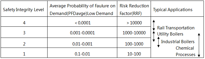 流程工業(yè)過(guò)程中不容易使用數(shù)字估算RRF,這就使得IEC 61508標(biāo)準(zhǔn)中提出了安全完整性等級(jí)(SIL)。