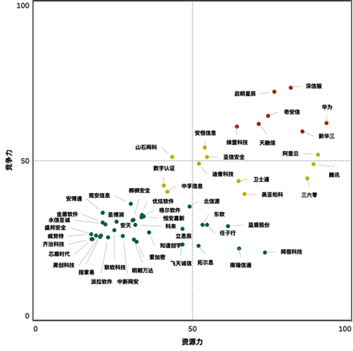 創(chuàng)新者:創(chuàng)新者區(qū)域的企業(yè)安全業(yè)務(wù)收入在1億以下,成立時(shí)間平均5年以內(nèi),目前還無法進(jìn)入50強(qiáng)排名,其資源力和競(jìng)爭(zhēng)力都需進(jìn)一步提升,在單一細(xì)分領(lǐng)域目前仍面臨競(jìng)爭(zhēng)壓力,但具備較好的發(fā)展前景,是行業(yè)技術(shù)創(chuàng)新的源動(dòng)力。