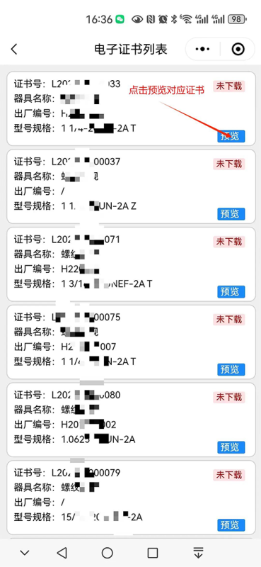 2、點擊電子證書,輸入送檢大單號和大單號中預留的手機號,發(fā)送驗證碼后點擊查詢