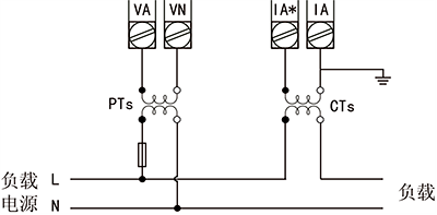 ②單相兩線系統,采用1PT,1CT方式的接線圖