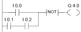 滿足下列條件之一時(shí),輸出端Q4.0的信號狀態(tài)將是“0”:①輸入端I0.0的信號狀態(tài)為“1”時(shí);②或當(dāng)輸入端I0.1和I0.2的信號狀態(tài)為“1”時(shí)。
