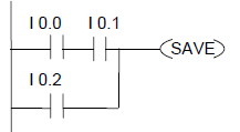 滿足下列條件之一時(shí),將會通過能流:①輸入端I0.0和I0.1的信號狀態(tài)為“1”時(shí);②或輸入端I0.2的信號狀態(tài)為“1”時(shí)。