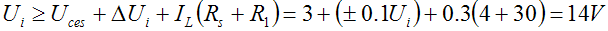 當(dāng)輸入電壓最低,而輸出電壓最高時,調(diào)整管兩端電壓Uce最低,如用晶體管作放大器,則工作電壓Uce必須高于該管的飽和電壓Uces。,放大器才能正常工作。從手冊知晶體管的Uces值均小于3V。這時可用下式來計算: