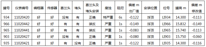 由此,可斷定由于施工階段,相關人員在施工時責任心不強,未按規范保護儀表設備,造成變送器雨天由儀表信號接口處進水,引起變送電子元件快速老化,造成儀表測量誤差。聯系昌暉儀表制造有限公司售后,更換部分器件后,重新進行參數設置(如下表所示)。經信號測試,調試投運后指示正常。通過這系列的現場檢查驗證,進一步確定雷達液位計在罐區應用的優越性和可靠性。