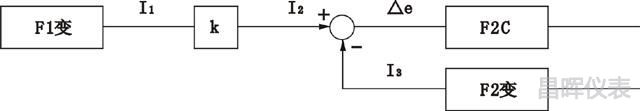 2、某工廠有一電動Ⅲ型比值調(diào)節(jié)系統(tǒng),F(xiàn)1變送器的量程為0-700m3/h,F(xiàn)2變送器的量程為0-1200m3/h,兩臺變送器均不帶開方器,F(xiàn)1正常流量為400m3/h,F(xiàn)2正常流量為800m3/h,其信號傳遞圖如下所示。試求比值系數(shù)k和正常情況下的I2、I3的電流值?