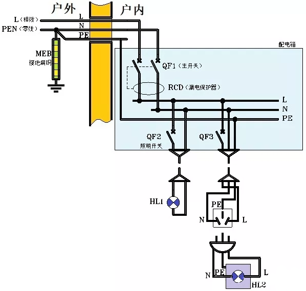 1、在戶外,配電系統引來一條火線(相線)和零線。其中零線做了重復接地,然后分開為中心線N和地線PE,隨同相線L一同入戶。至于火線到底是三相中的哪一條,與居家的配電和用電毫無關系,任意一條都可以。 從零線重復接地點開始往后,包括入戶之后的系統,零線PEN就不存在了!!!