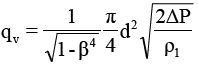 公式⑥中ε被測介質的可膨脹性系數,一般來說對于液體ε=1;對氣體、蒸汽等可以壓縮流體ε<1;qv為流體的體積流量,單位:m3/s);ρ1為工作狀況下,節流件(前)上游處流體的密度,單位:kg/m3;d為工作狀況下節流件的等效開孔直徑,單位:m;△P為差壓,△P=P1-P2,單位:Pa。