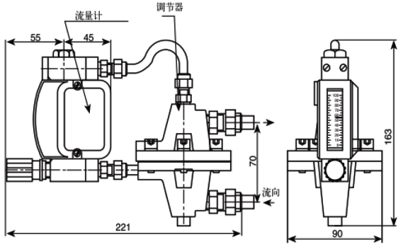 配置金屬管浮子流量計/恒定出口壓力恒流閥的吹掃裝置外形尺寸
