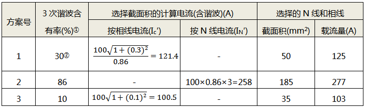 表2 照明設(shè)備存在3次諧波時導(dǎo)線截面積的選擇