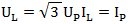 ,其中UP、IP為相電壓和相電流,在三相對稱電路中,負載三角形連接時,