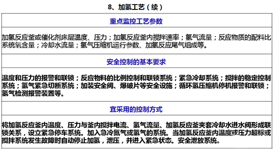 首批重點監管的危險化工工藝安全控制要求、重點監控參數及推薦的控制方案。