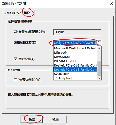 3、右鍵“TCP/IP”-“系統參數”-“單位”-選擇自已電腦的網卡Auto.1-“確定”