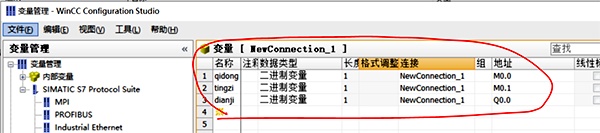 7、新建PLC程序中用到的變量“名稱”-“數據類型”-“地址”