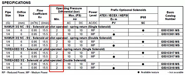 活塞F克服彈簧A的彈力向右運動,當進氣口1的氣源壓力過小時,A的彈簧力大于氣源壓力產生的推力,活塞F將無法動作;所以電磁閥有一個最小動作壓力,ASCO 531系列為2Bar;