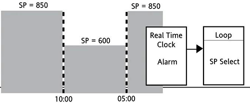 利用現代控制系統的智能化,可以自動控制熱處理設備的非工作時間設定點。在下面所示的例子中,控制系統了解鍋爐的動態,并能識別維持備用設定點所需的功率和達到運行設定點所需的功率。