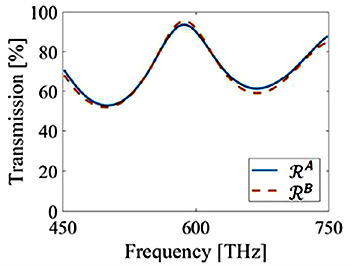 圖2 多層薄膜光學器件的透過率頻譜分布曲線