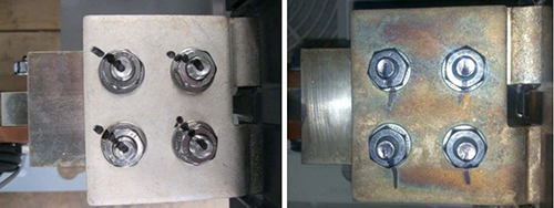 第二種情況,全新的鍍銀端子與母排搭接完,在現場運行一段時間后,出現發黃變暗的現象,此時不用擔心搭接面存在硫化氧化,因為一旦螺栓緊固到位,實際上銅排與端子的搭接面上無硫化氧化痕跡,所以不用擔心接觸電阻上升導致端子過熱。雖然端子與銅排搭接的外側已經變色,但是搭接面仍然保持原有的光亮,且無過熱的跡象。