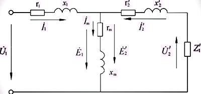 變壓器進入穩態后,勵磁電流將變得很小,根據KVL方程可得,U=-E+I0Z。這是變壓器在空載狀態下的相量關系,Z=r+jx,稱為漏阻抗,x為漏電感,x=ωL。-E=I0Zm,Zm=rm+jxm,rm為勵磁電阻,xm則為勵磁電抗,合起來的Zm則稱為勵磁阻抗。