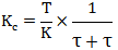 公式得到比例增益Kc=0.5,由圖1可以發現其設定值階躍響應曲線還是有衰減振蕩,這說明上面的比例增益計算公式還是太強了。根據前面的試驗我們還知道設定值階躍響應振蕩和被控對象的純滯后時間直接相關。基于上面的考慮,自衡對象的純比例控制器整定公式更新為: