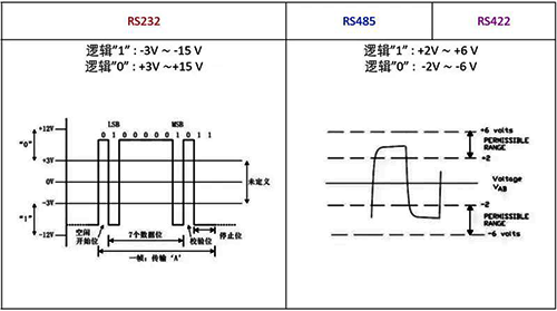 典型工作方式,RS232:3線全雙工;RS485:2線半雙工;RS422:4線全雙工。