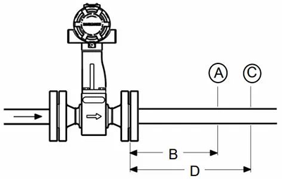 渦街流量計(jì)安裝時(shí),上游直管段的最小長度應(yīng)為10倍管徑(10D),下游直管段的最小長度應(yīng)為5倍管徑(5D)。