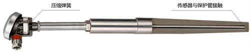簧壓式適配器有助于確保溫度傳感器與熱套管緊密接觸,一般簧壓式適配器會(huì)制造得比指定長(zhǎng)度長(zhǎng)幾毫米,以確保與熱套管底部的接觸盡可能緊密,最大限度減少環(huán)形間隙,一旦其中空氣起到絕緣體的作用,傳感器滯后可能會(huì)增加一個(gè)數(shù)量級(jí)。