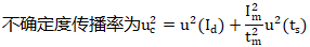 式中:ΔIt為溫度變送器在溫度t時(shí)的示值誤差;Id為溫度變送器的輸出電流值;Im溫度變送器的輸出電流量程;tm為溫度變送器的溫度輸入量程;ts為溫度變送器的輸入溫度值;t0為溫度變送器輸入的下限溫度;I0為溫度變送器的輸出電流的理論下限值;不確定度傳播率為:
