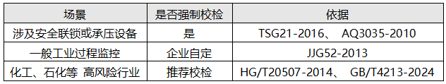 若壓力表與承壓設(shè)備(如氣動(dòng)執(zhí)行機(jī)構(gòu)的安全保護(hù)系統(tǒng))直接相關(guān),可能被歸類為安全附件,需強(qiáng)制定期檢定。