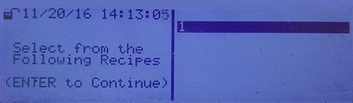 2、在批控器顯示屏查看是否已經選擇了配方1,點擊“ENTER”進入密碼確認;