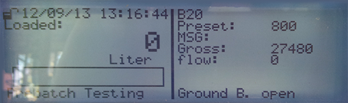 1、裝車過程中如果出現靜電報警,在裝車批量控制器DL8000屏幕下方會顯示“GROUND.OPEN”,并伴有紅色指示燈常亮,請查看靜電接地夾是否牢靠的夾在罐車車體上,報警消除以后請點擊“CLEAR”鍵,再點擊“START”鍵繼續裝車;