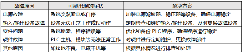 1、電源故障:電源不穩定或供電中斷是導致PLC控制系統自停的主要原因之一。