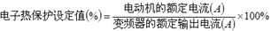 2、有的變頻器則在設(shè)定電動(dòng)機(jī)的額定電流后,再設(shè)定動(dòng)作電流,這時(shí)采用運(yùn)行電流百分?jǐn)?shù)的表示方法,即