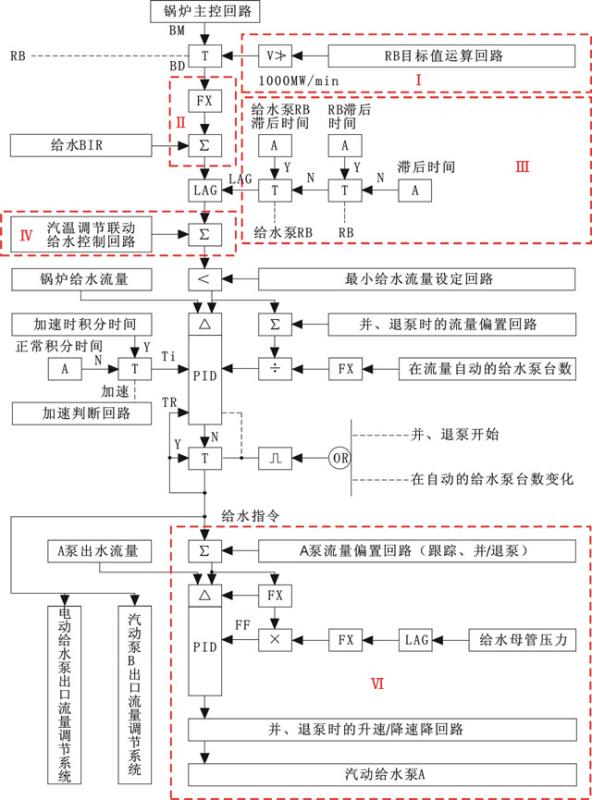 (3)給水流量控制偏差大,需要快速消偏差時。為了控制的穩定,必須在各臺給水泵出口流量控制跟蹤得上的情況下,給水主控的加速才能起作用。