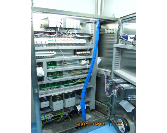 2、24V開關電源,存在容量選擇偏小,總共10A(CPU,I/O,2塊稱重儀表,2個無紙記彩色錄儀,2個TP1200觸摸屏),出線太細(只有1mm2線徑),負荷重而傳輸距離遠,導致線阻大壓降大,導致控制柜間的壓差大,遠端設備受干擾嚴重。