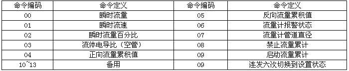 從機接到該命令后,立即啟動流量累積計算,并回送命令認可信息。該功能可用于斷續過程計量。