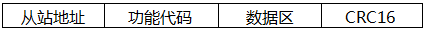 CRC16:循環(huán)冗余校驗,校驗從從站地址到數(shù)據(jù)區(qū)最后一個字節(jié),計算多項式碼為A001(hex)。