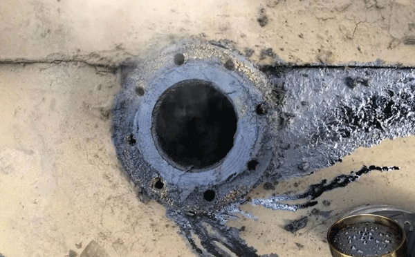 現場儲罐高度為7m,罐內瀝青溫度220℃,罐內有加熱盤盤管,且直徑較小;加熱盤管內有高溫蒸汽,使瀝青一直保持在液態;儀表安裝高度為7.5m,安裝法蘭為DN150。之前客戶選用的是26G喇叭口雷達物位計,由于瀝青的粘附性,即使喇叭口做了防塵罩保護, 喇叭口天線外部及底部天線罩有大量掛料,嚴重影響了雷達信號傳輸。