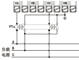 c、為保證測量數據的準確度,必須正確接入電壓測試信號。當被測試電壓小于交流三相電壓表電壓量程,可以直接接入;否則,必須經電壓互感器PT接入。
