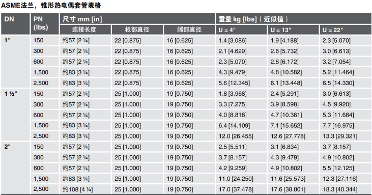 溫度計套管THERMOWELL型號舉例(附結(jié)構(gòu)圖)