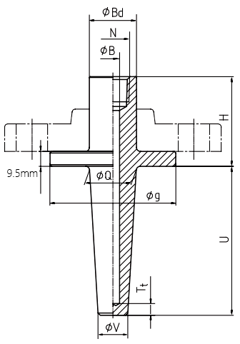 [B]:法蘭與套管之間為螺紋焊接(1NPT螺紋+雙面焊接)
