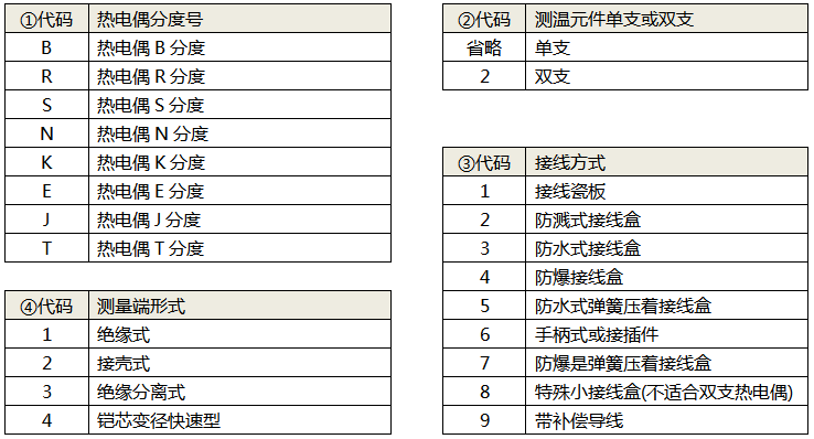 ◆代碼⑤的“安裝固定裝置”是指鎧裝熱電偶芯與熱電偶外保護(hù)管連接處的安裝固定方式