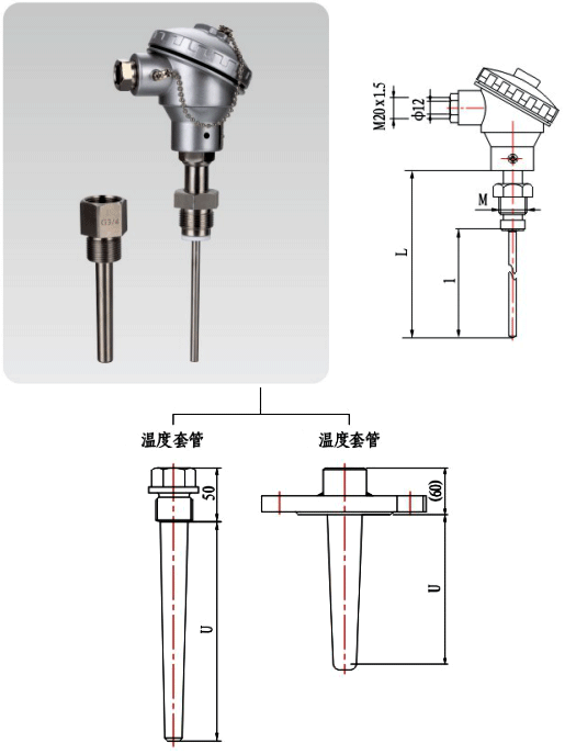 這種組合有一個不足之處:鎧偶強(qiáng)度不足,在振動環(huán)境中可拆卸式熱電偶(熱套式熱電偶)容易在接線盒與保護(hù)管連接部位斷裂