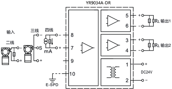 YR9034A信號(hào)隔離器融合信號(hào)隔離器和配電器功能為一體,可以接收電流源4-20mA信號(hào),也可以接收來自二線制、三線制和四線制變送器的4-20mA信號(hào),用戶用一臺(tái)儀表接不同端子就輕松實(shí)現(xiàn)各種功能需求。
