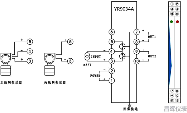 1、YR9034A系列隔離器面板帶電源指示燈。