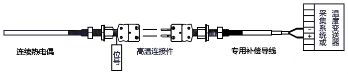 在訂購連續(xù)熱電偶時還需要配套訂購與連續(xù)熱電偶固定組件、壓板/填料、走線槽、接線盒、專用補償導線和專用溫度變送器/信號采集器。