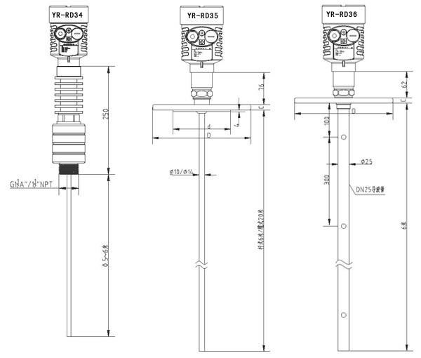 | YR-RD34□□□□□□□□-□ 最大量程6米,液體、蒸汽測量 | |