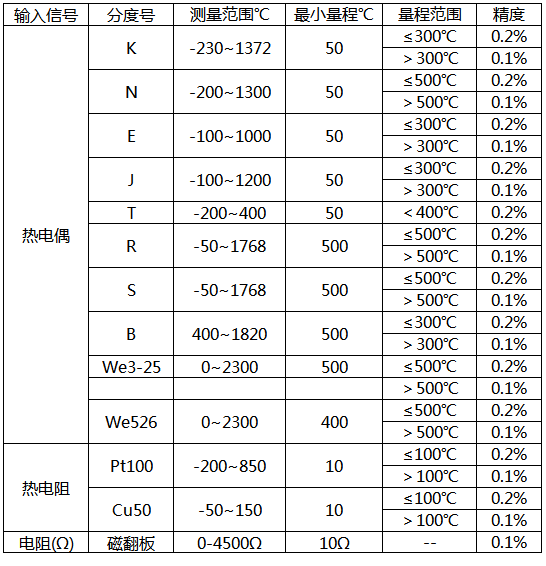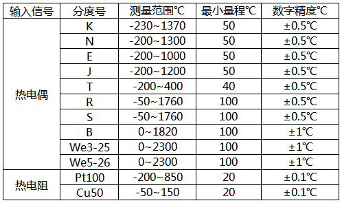 ◆智能非隔離型溫度變送器YR-ER213輸入類(lèi)型及精度