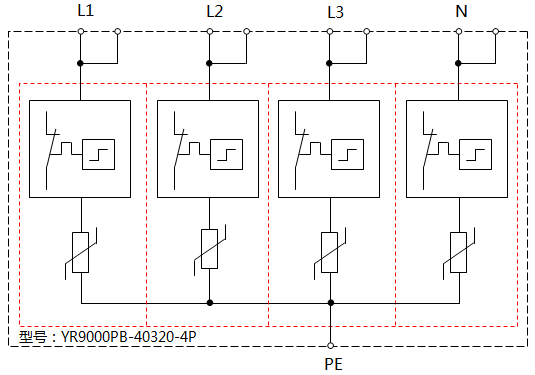 ◆YR9000PB-40/320-4P三相交流電源電涌保護器接線