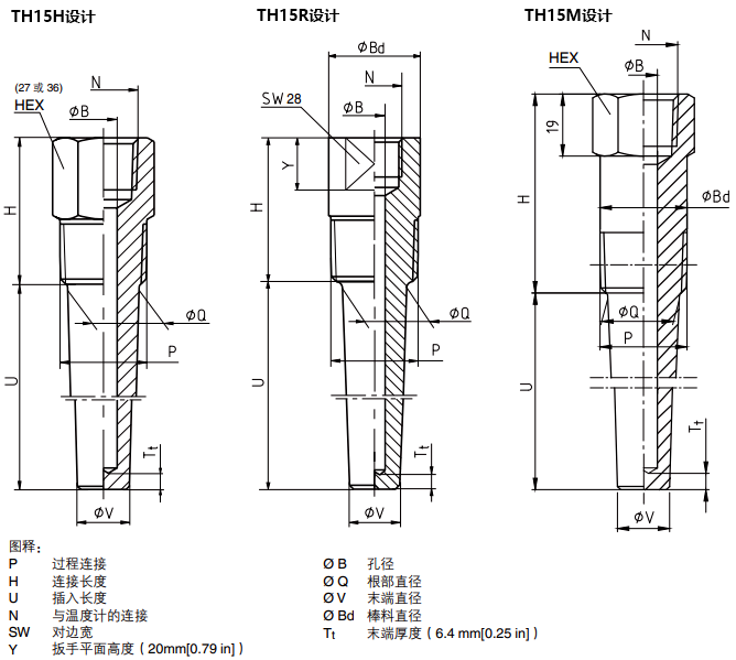 [TH15]:過程連接為固定螺紋+儀表接口為內螺紋,默認
